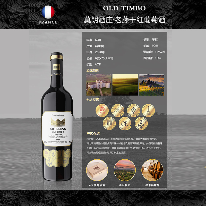 商品名称:莫朗酒庄老藤干红葡萄酒 (木箱)