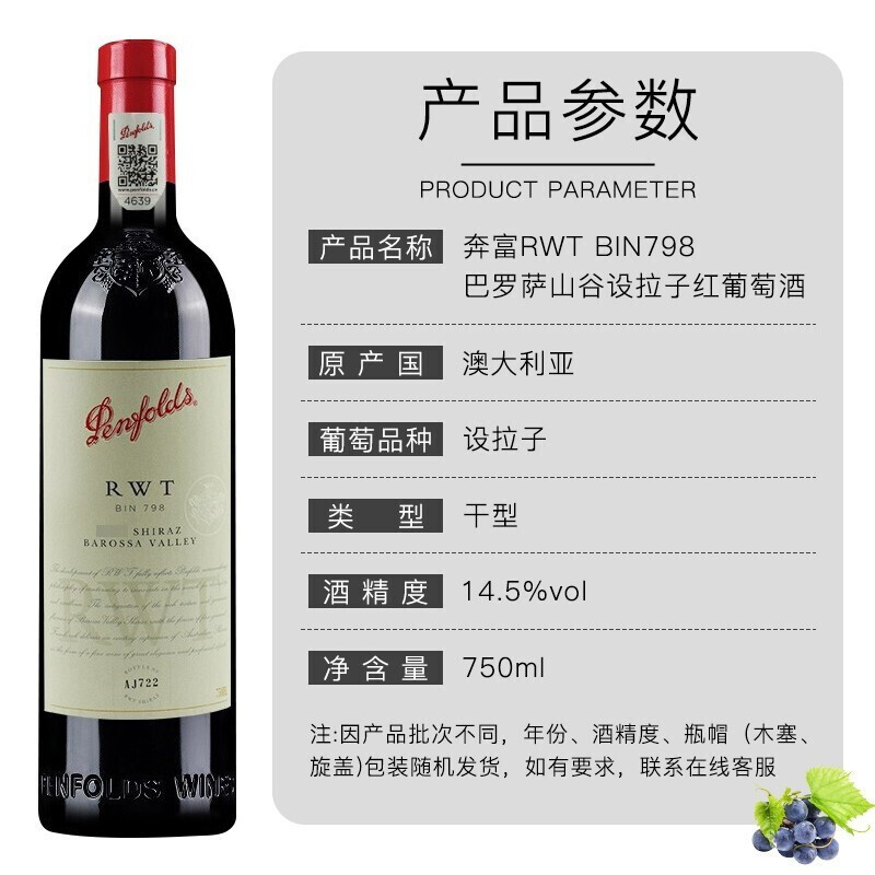 商品名称:Penfolds奔富RWT798干红葡萄酒